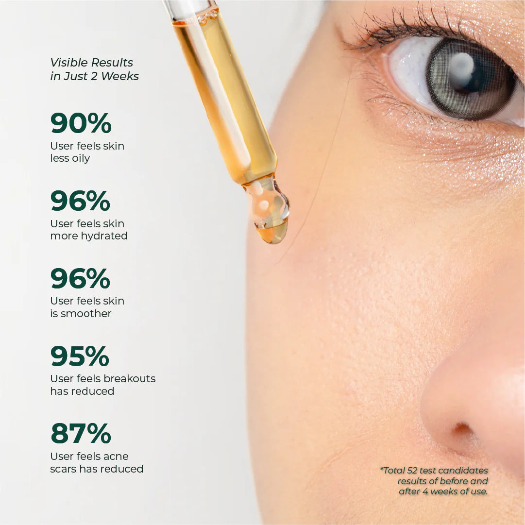Treating oily skin without dehydrating it is possible with our moisturizing solution, which also fights acne. Most importantly, acne serum restores the skin's natural defense system to treat existing acne and stop breakouts in the future. Control of bacteria that cause acne, lessening of acne scars, smoother skin with smaller pores, and better skin tone and texture are among the advantages.